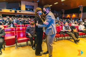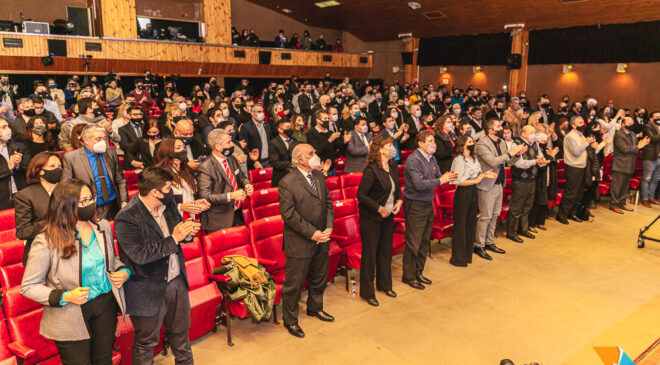 Recordó a su vez, que “tenemos raíces milenarias, el pueblo Selk’nam sigue vivo acá, entre nosotros. Desde ese origen comenzó esta historia”. También hizo mención a salesianos, al campo, el petróleo, el comercio y el Polo Industrial. “Cada generación hizo frente a las adversidades del clima y de la distancia, con coraje. Así se formó esta comunidad fuerte y valiente. Ser riograndense y malvinero van de la mano, es parte de nuestra vida y de nuestra identidad», sostuvo.