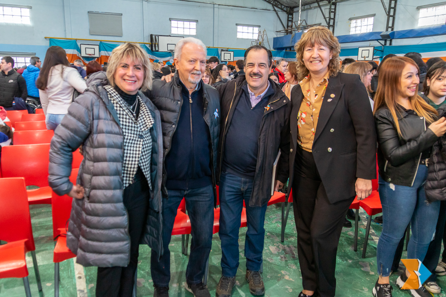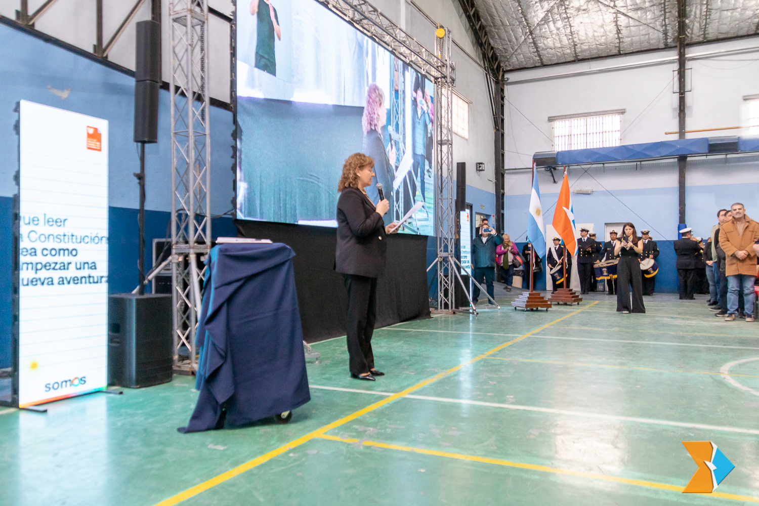 Ushuaia, lunes 3 de junio de 2024.- Por iniciativa del Gobierno provincial se realizó por primera vez, la ceremonia de jura de promesa de lealtad a la Constitución de Tierra del Fuego, Antártida e Islas del Atlántico Sur, de manera conjunta con alumnas y alumnos de establecimientos de educación pública y de gestión privada de la capital. La actividad, que se desarrolló en el gimnasio del Colegio Don Bosco, fue presidida por la vicegobernadora Mónica Urquiza quien fue acompañada por el ministro de Educación, lic. Pablo López Silva; el vicepresidente 1º de la Convención Constituyente (MC), Ruggero Preto y funcionarios provinciales.