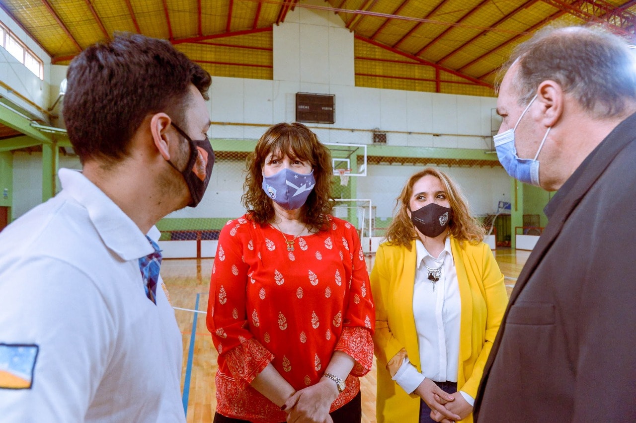 Urquiza estuvo acompañada por la subsecretaria de Relaciones Institucionales del Ministerio de Trabajo y Empleo, María Bockelmann, el Director Provincial de Deportes Zona Sur Mariano Vallaro, y los referentes de la Liga Ushuaiense de Fútbol, Marcelo González y Sebastián Benítez.