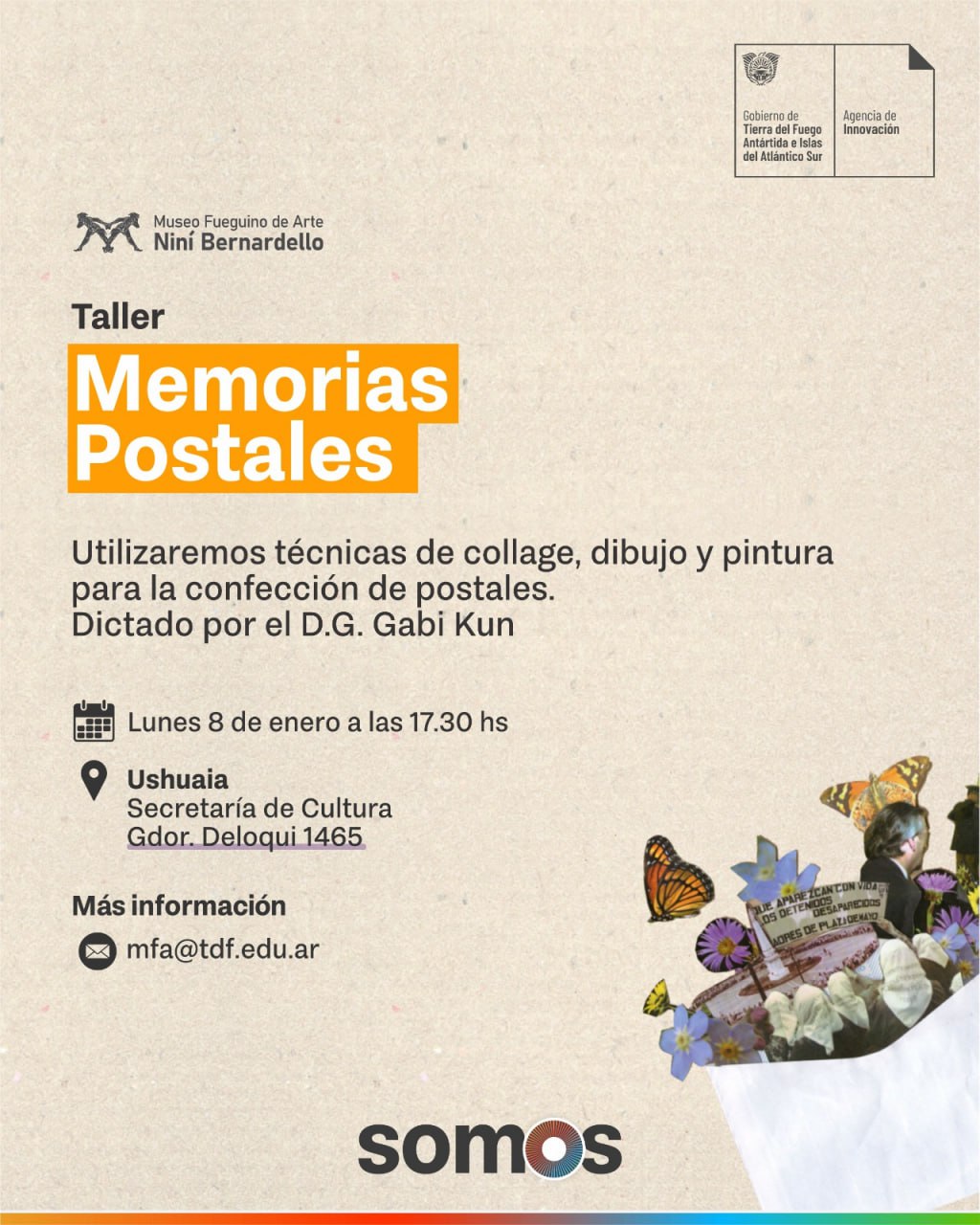 La Secretaría de Cultura dependiente de la Agencia de Innovación llevará a cabo la inauguración de la muestra itinerante “Memorias Postales” este domingo 7 de enero a las 18 HS en la Secretaria de Cultura (Gdor. Deloqui n° 1465 – Ushuaia).