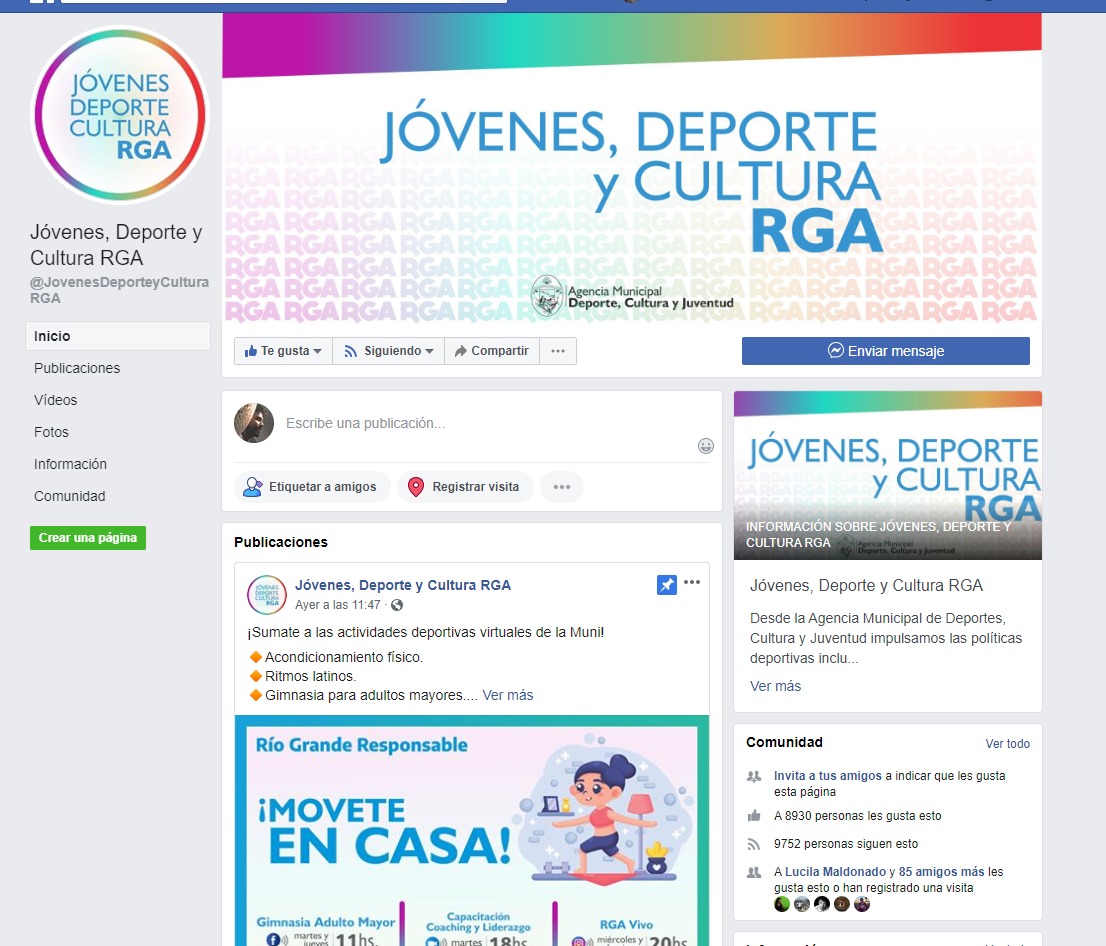 Los interesados en conocer la amplia propuesta de talleres culturales y deportivos online que brinda el Municipio, pueden ingresar a la página de Facebook “Jóvenes, Deporte y Cultura RGA”, en la cual es trasmitida cada actividad.