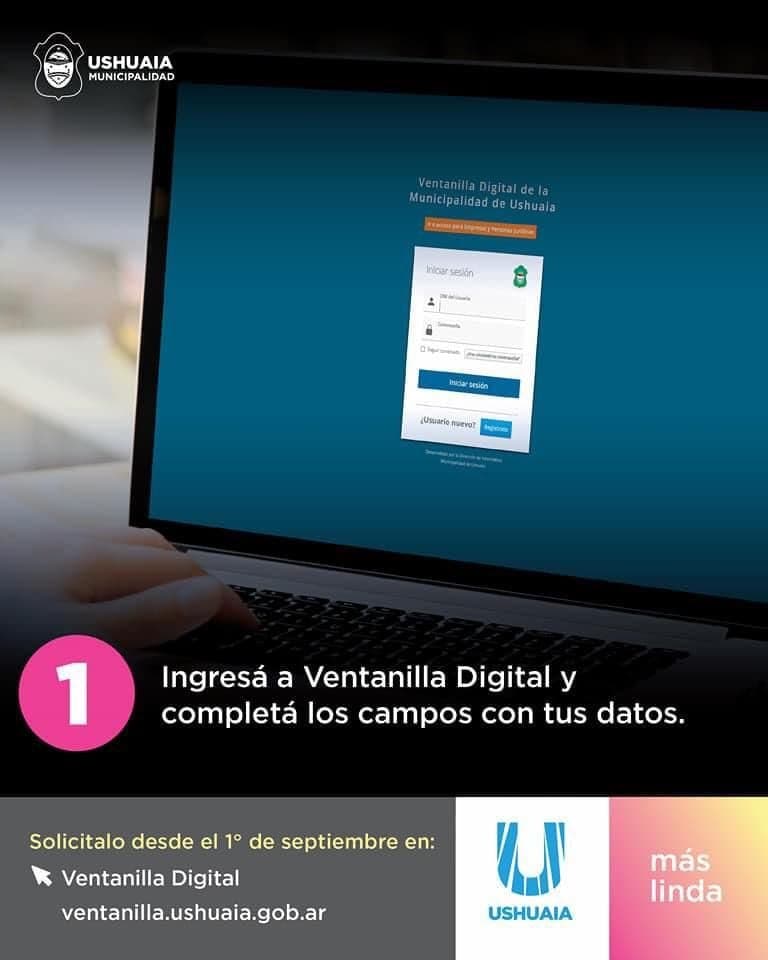 1. Ingrese a Ventanilla Digital (ventanilla.ushuaia.gob.ar) y complete los campos con sus datos.
