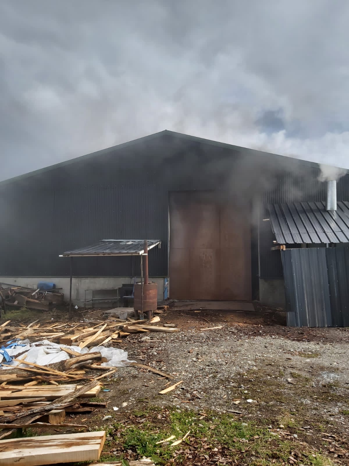 El 101 respondió a una llamada de emergencia sobre un galpón lindero al aserradero Guaraní por calle Eva Perón de la ciudad de Tolhuin. Al llegar a la escena el servicio de emergencia comenzó a sofocar las llamas que provenían del galpón.