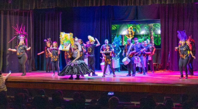 Este domingo, cientos de vecinas y vecinos asistieron a la Casa de la Cultura donde disfrutaron de este gran espectáculo que se llevó adelante, por primera vez, en el marco del Carnaval. Un evento que reunió a diferentes artistas, entre murgas, batucadas y comparsas.