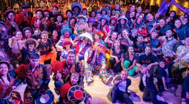 Sobre el escenario se presentaron “Lalola”, “Cuerpo de danzas Munay”, “Fraternidad Fuego y Pasión”, “Comparsa Emperatriz”, “Raíces Andinas” y “Murga Explosiva Pizpireta”, quienes deleitaron a los presentes.