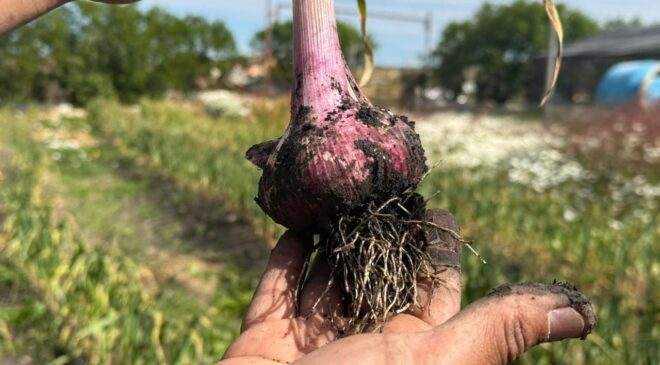 El ajo violeta, reconocido por su sabor intenso, logró desarrollarse favorablemente en el suelo fueguino, demostrando el potencial de la región para incorporar nuevos alimentos a la producción local.