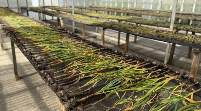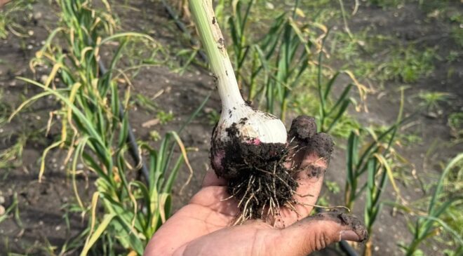 RGA ALIMENTOS COSECHÓ AJOS VIOLETAS POR PRIMERA VEZ EN TIERRA DEL FUEGO