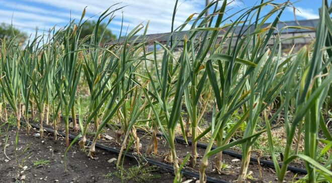 Río Grande Activa, en conjunto con el Municipio de Río Grande, llevó adelante la primera cosecha de ajo violeta. La producción se realizó mediante un cultivo a cielo abierto, con la implementación de riego por goteo, una técnica que permite optimizar el uso del agua y asegurar un manejo eficiente y responsable del cultivo. Como resultado de esta primera producción, se cosecharon aproximadamente 2700 cabezas de ajo violeta.