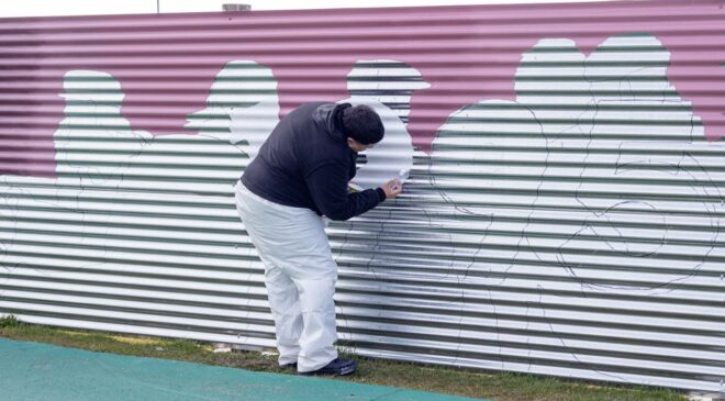 Vale aclarar que se está desarrollando en el cerco perimetral que cubre la construcción de la nueva Carpa de la Dignidad. Dicho edificio, es una obra llevada adelante con fondos propios por el Municipio.