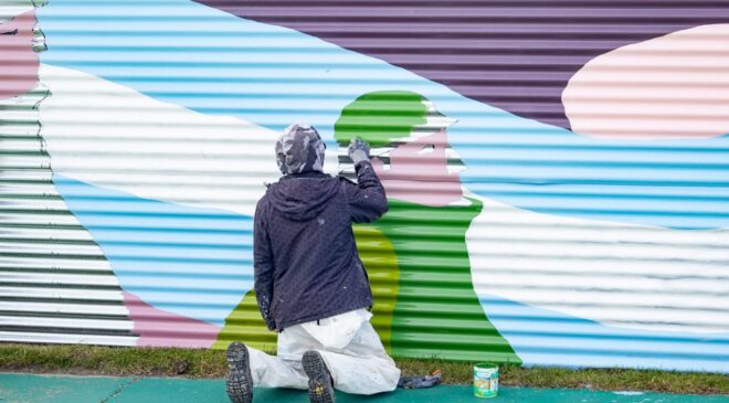 La elaboración del mural se encuentra a cargo de reconocidos muralistas de nuestra ciudad: Solange Terluk; Josue Gómez; Pamela Mena; Alejandra Pedraza; Emmanuel Muñóz y Kevin Romero.