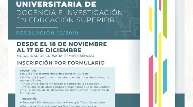 Respecto a la documentación, se deberá presentar fotocopia DNI frente y dorso, fotocopia de título secundario, dos fotos tipos carnet 4×4, el formulario de inscripción impreso y una carpeta colgante. Mientras que para la diplomatura se suma la fotocopia del título académico.