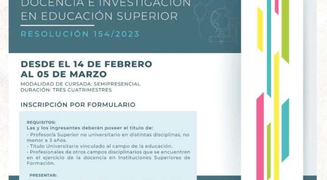 Cabe destacar que, las preinscripciones para la Diplomatura Superior Universitaria de Docencia e Investigación en Educación Superior, se extenderán hasta el 5 de marzo.