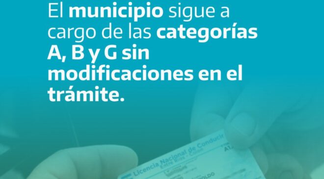 En el ámbito del Municipio se seguirán gestionando las licencias de conducir de las categorías particulares A, B y G. Además, se continuará emitiendo licencias categoría profesional en las subclases D1 y E2 con carácter de habilitación jurisdiccional, y exámenes de la subclase D4 con trámite iniciado en la plataforma oficial.