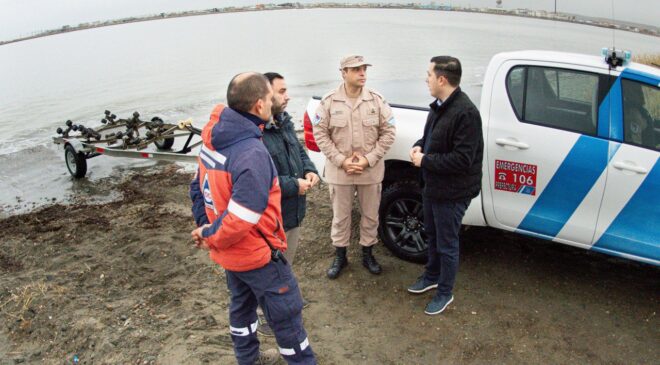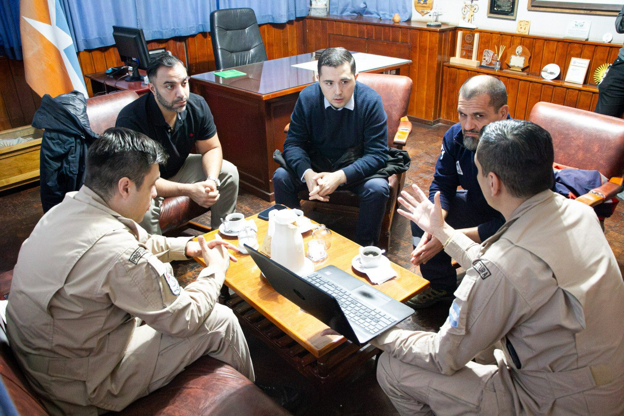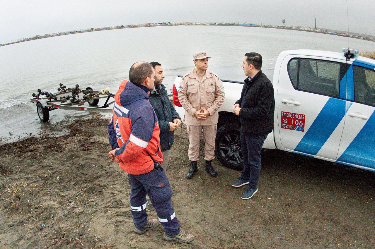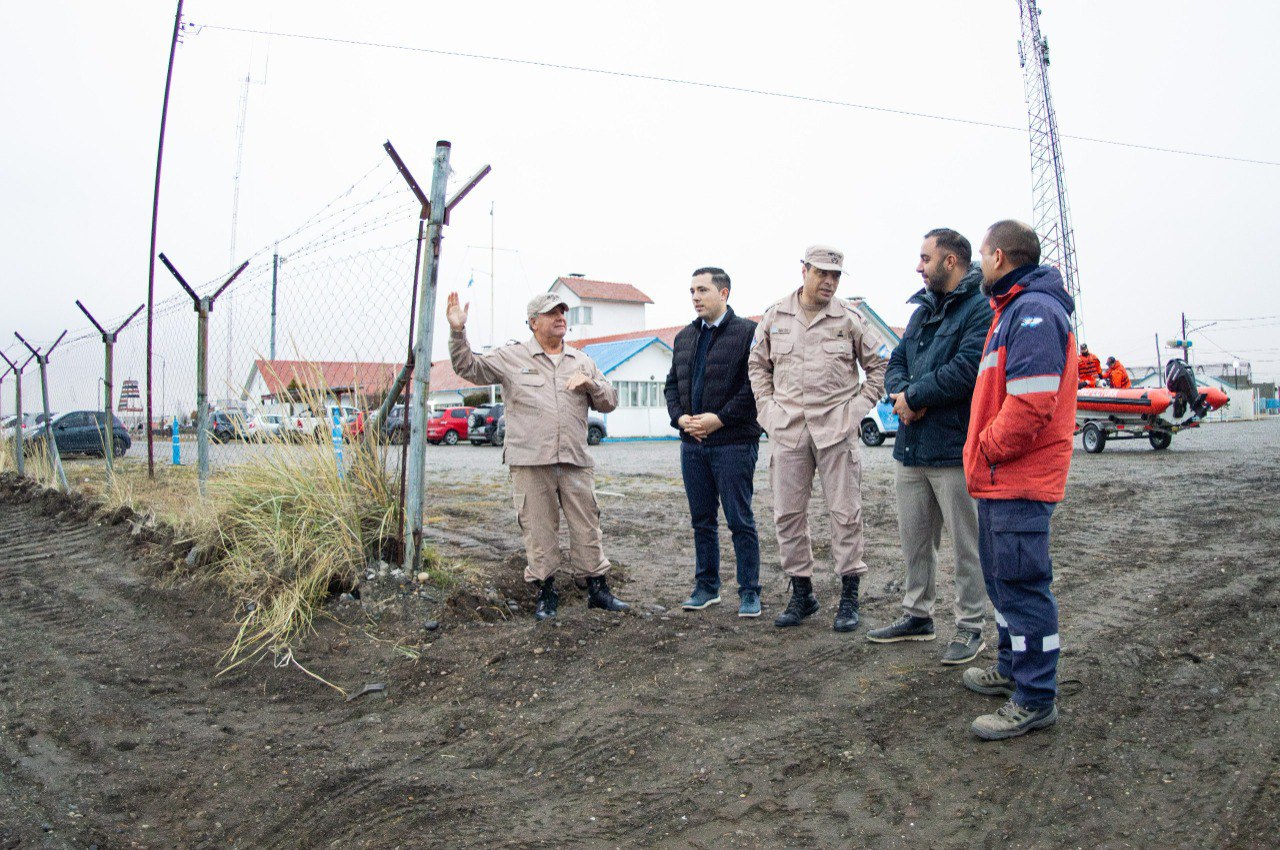 Durante el encuentro, se abordó el trabajo conjunto que se viene desarrollando entre la Prefectura, el Municipio de Río Grande y las direcciones de Puertos y de Vialidad de la Provincia, a partir de la reciente conformación de un corredor de emergencia que conecta el edificio de Prefectura, atraviesa el predio de Puertos y llega hasta el barrio AGP, donde se encuentra una de las bajadas náuticas estratégicas para la intervención.