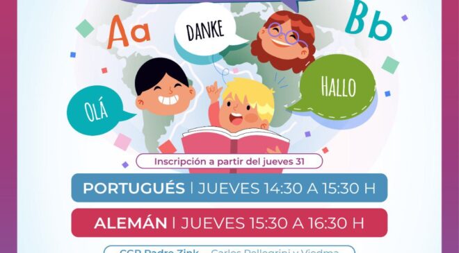 En esta oportunidad, las infancias de 6 a 12 años podrán aprender portugués los jueves de 14:30 a 15:30 y alemán el mismo día de 15:30 a 16:30 horas. Ambos espacios de formación se dictarán en el CGP “Padre Zink”.