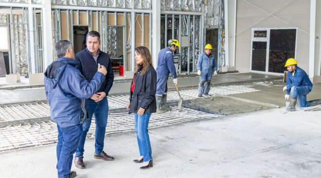 Por su parte, la secretaria de Obras Públicas, Silvina Mónaco, anunció que “la obra se encuentra en más de un 75% de avance físico” e indicó que “están finalizando con la colocación de la loza radiante del sector del SUM que es lo último que faltaba en cuanto a obra húmeda dentro del espacio”.