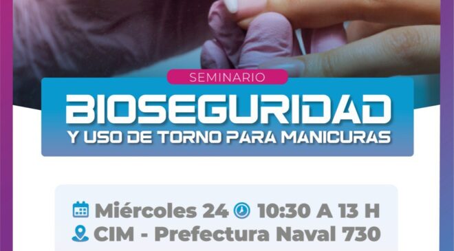 En esta oportunidad, se llevará adelante el Seminario “Bioseguridad y uso de torno para manicuras”, una instancia formativa destinada a brindar herramientas prácticas y teóricas para el desarrollo profesional en el rubro de la estética. La capacitación se realizará el miércoles 24 de septiembre, de 10:30 a 13 horas, en el Centro Integral de la Mujer (CIM), ubicado en Prefectura Naval 730.