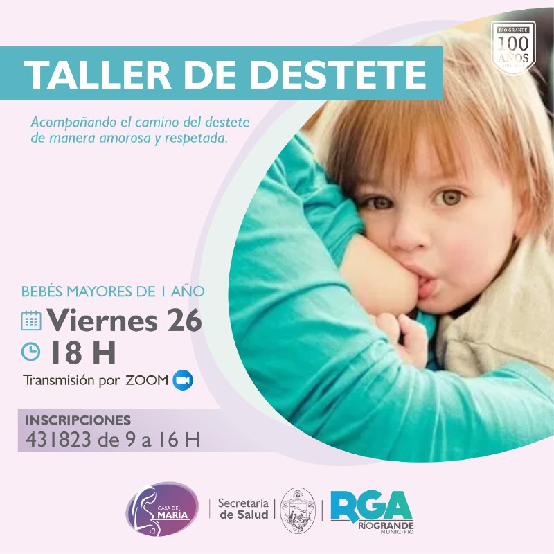 Por un lado, este viernes 26 de marzo, a partir de las 18 horas, se llevará adelante el taller virtual de “Destete”: acompañando el camino del destete de manera amorosa y respetada. Cabe destacar que está orientado a familias con bebés mayores a 1 año de edad.