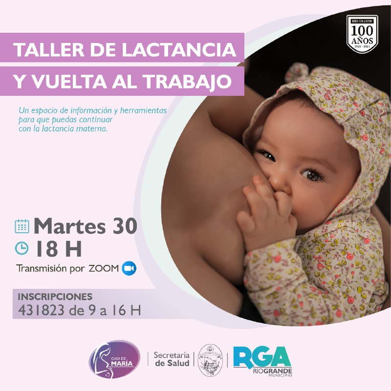 Asimismo, el martes 30 de marzo, a partir de las 18 horas, se desarrollará el taller virtual en “Lactancia y Vuelta al Trabajo”, proponiendo un espacio de información y herramientas para poder continuar con la lactancia materna.
