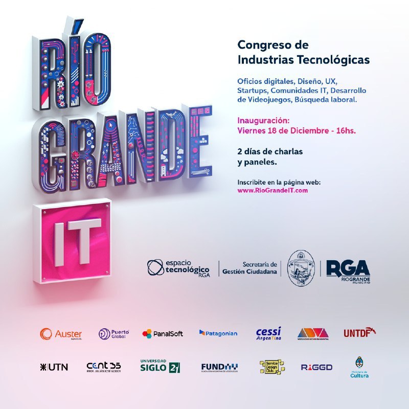 El Congreso se desarrollará este viernes 18 y sábado 19 y constará de 3 ejes temáticos: oficios digitales; comunidades startup; y oportunidades de negocios que pueden haber en Río Grande a partir de la creación y radicación de empresas de base tecnológica.