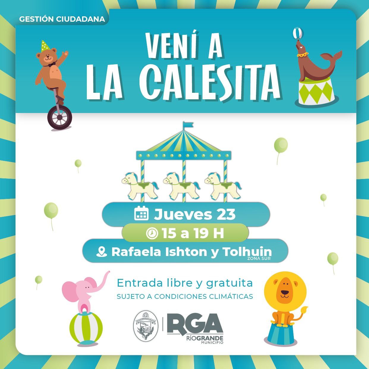El Municipio de Río Grande invita a todas las vecinas y vecinos a disfrutar de la Calesita de Zona Sur. Un espacio recreativo al aire libre, ideal para que las familias, niñas y niños disfruten en un ambiente seguro y divertido.