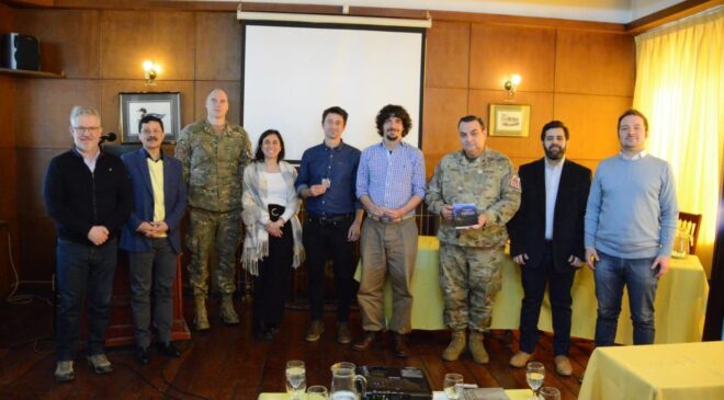 Asimismo, vale destacar que el libro “Ciudad de la Soberanía, Río Grande, Malvinas y la construcción de la Argentina Bicontinental”, editado en conjunto entre el Municipio de Río Grande y la Universidad Nacional de la Defensa, fue el material de referencia y tres de los autores del libro -Juan Augusto Rattenbach, Juan Pablo de Luca y María Laura Civale- fueron quienes estuvieron a cargo de la disertación, la cual se desarrolló poniendo acento en la necesidad de fortalecer las capacidades logísticas, productivas y de defensa de nuestra ciudad, como localidad situada en el centro geográfico de la Argentina Bicontinental.