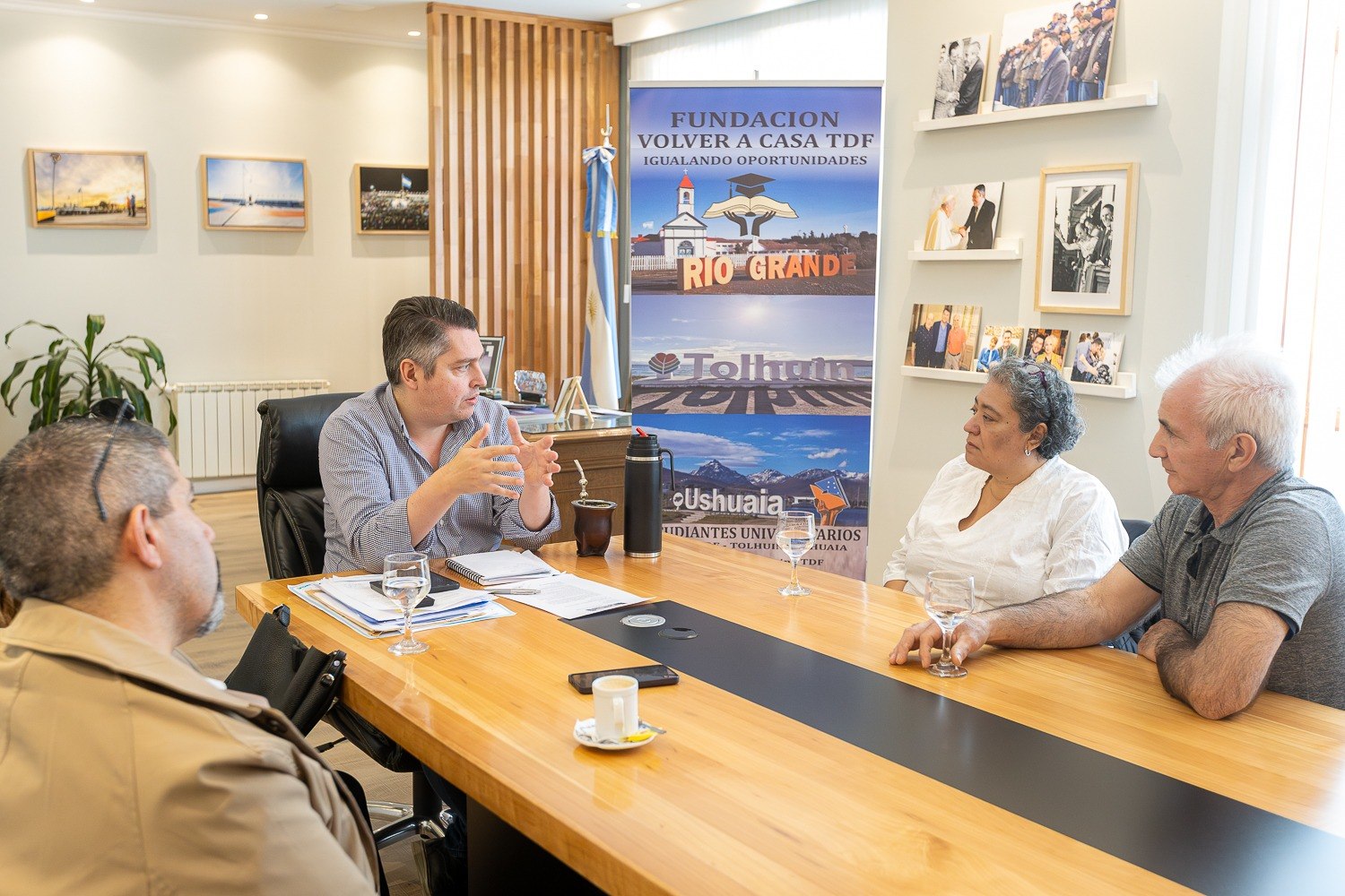 El intendente Martín Perez mantuvo un encuentro con integrantes de la Fundación Volver a Casa, una organización conformada por padres, madres y familiares de jóvenes de Río Grande que se encuentran fuera de la provincia cursando sus estudios superiores.
