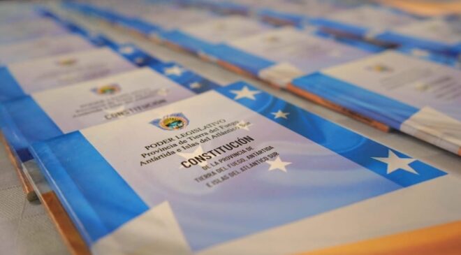 Tras la jura, cada estudiante recibió entregar un ejemplar de la Constitución fueguina.