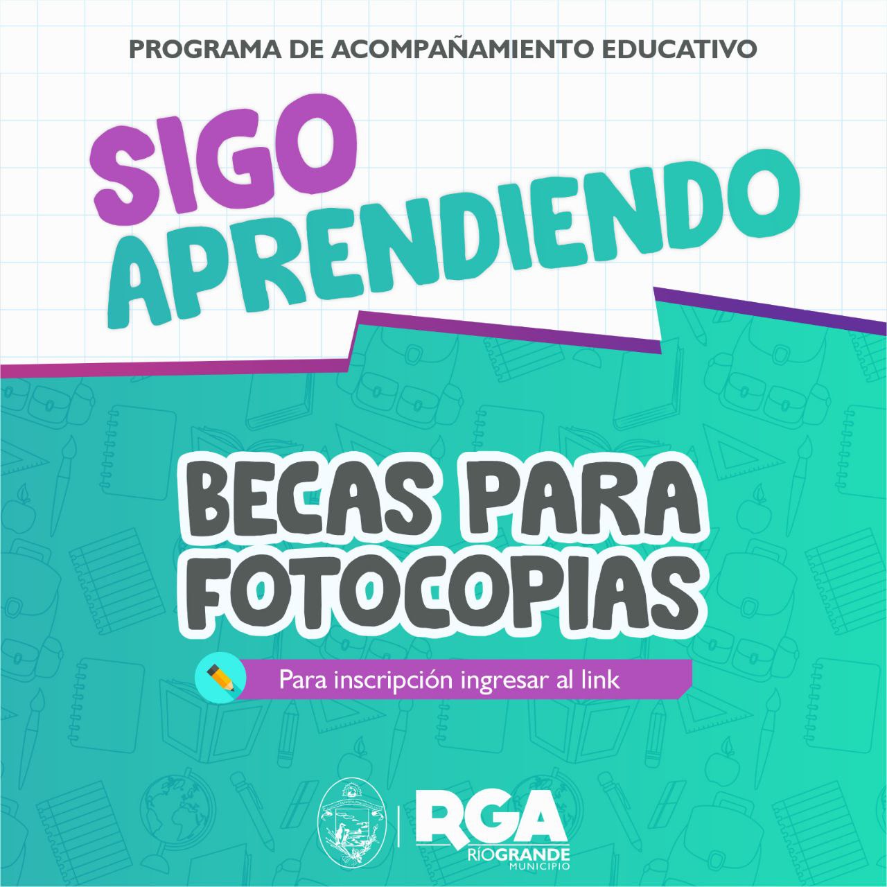 El mismo tiene como fin acompañar la trayectoria escolar de las juventudes, a partir de becas en fotocopias. De esta manera, el Municipio de Río Grande concibe al derecho al acceso a la educación como un factor imprescindible para la construcción de una sociedad inclusiva, justa y formada.