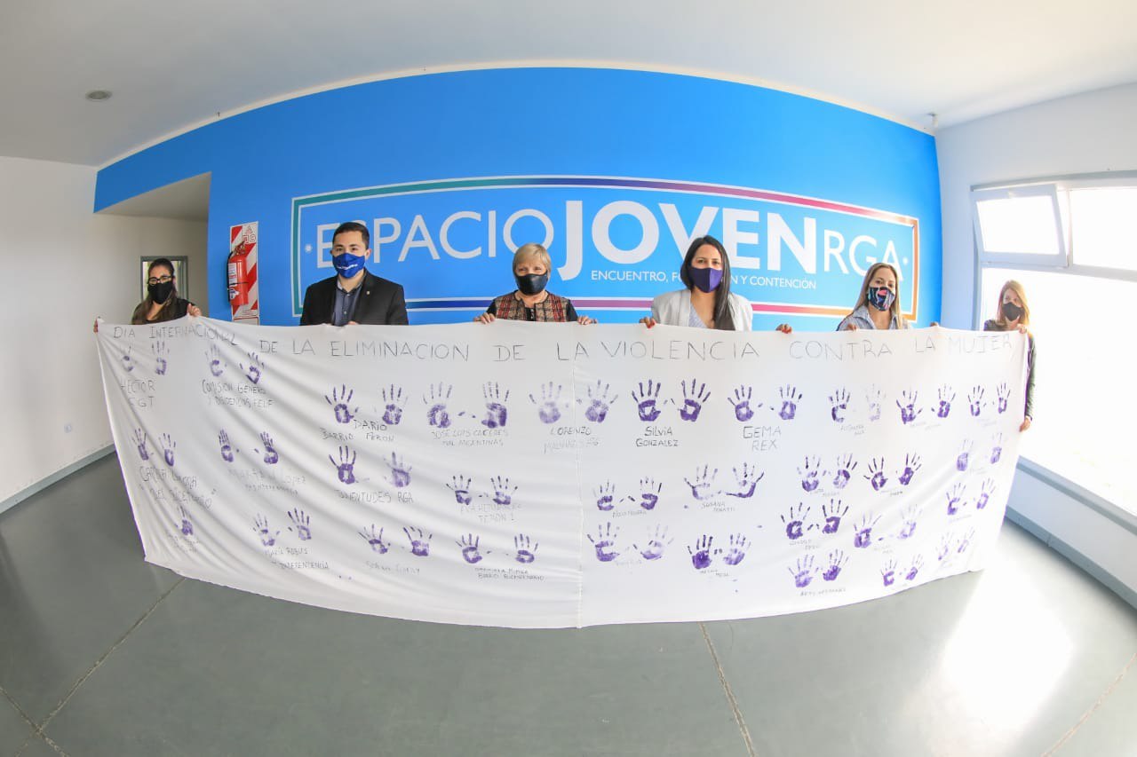 En el marco de las actividades por el “Día Internacional de la Eliminación de la Violencia contra la Mujer», Espacio Joven RGA, dependiente de la Secretaría de Gestión Ciudadana, realizó una intervención artística con el fin de sellar con las manos el compromiso a luchar por los derechos de la mujer.