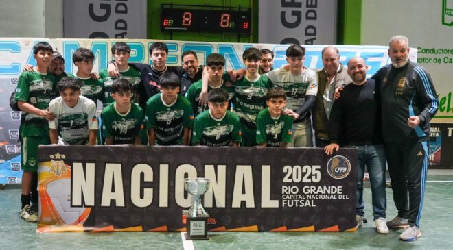 Durante cuatro jornadas, Río Grande fue epicentro del primer Torneo Nacional de Futsal AFA en las categorías Sub 13 y Sub 15, consolidando una vez más su rol protagónico en el desarrollo de la disciplina a nivel nacional. La competencia se disputó en el gimnasio municipal de la Margen Sur y la Fortaleza Verde, con la participación de equipos de diferentes puntos del país. Boxing Club de Río Gallegos y Camioneros de nuestra ciudad fueron los campeones.