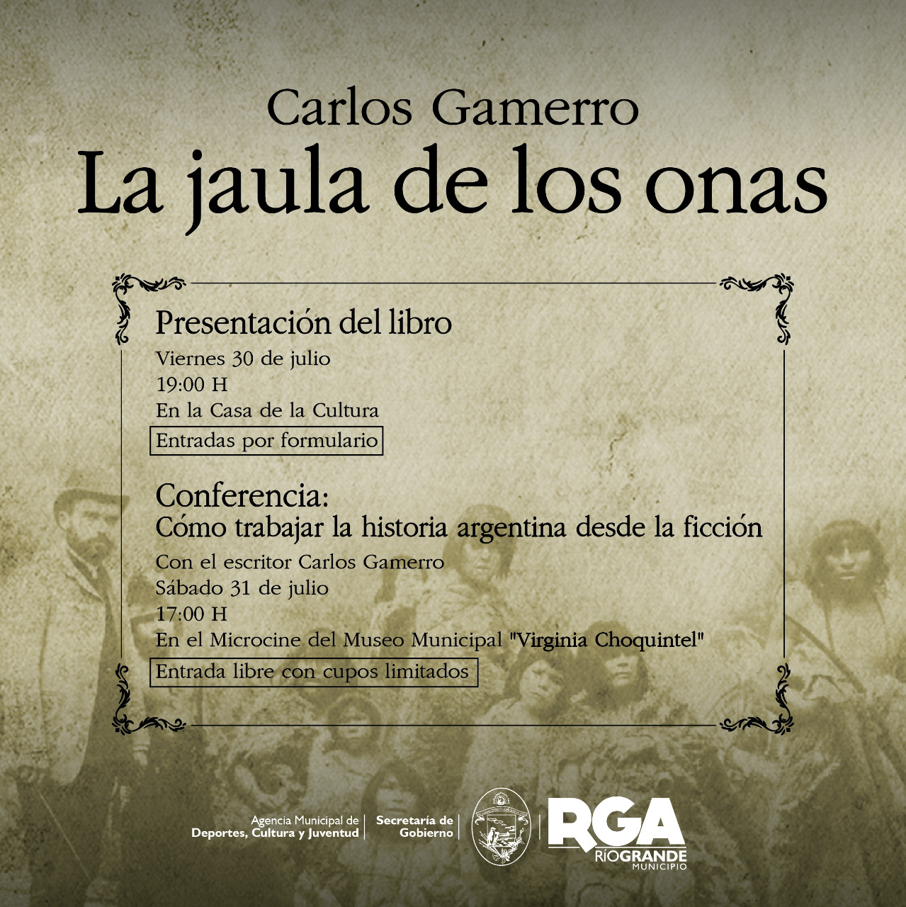 La nueva novela de Carlos Gamerro será presentada en Río Grande en el marco del centenario de la ciudad, el día viernes 30 de julio a las 19 horas en la casa de la cultura donde se presentará la novela del autor, mientras que el sábado 31 a las 17 horas estará llevando a cabo un taller sobre cómo ficcionar la historia argentina en el auditorio de cine del museo Virginia Choquintel. El escritor, previo a la presentación del libro, habló con este medio sobre su obra.