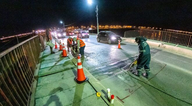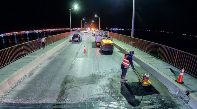 Está en marcha la primera etapa de la obra de remediación asfáltica del Puente General Mosconi. Esta fase abarca trabajos preliminares de demarcación y adecuación de la zona para posteriormente avanzar con asfalto en caliente.