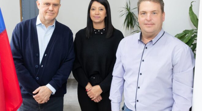 En una fructífera reunión se encontraron nuevamente el Legislador y la Concejal riograndense, junto al representante del Gobierno de Chile en Río Grande, para continuar trabajando en la agenda conjunta que mantienen desde hace tiempo.