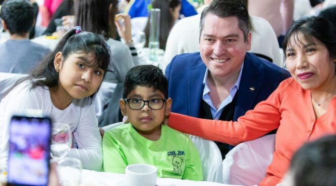 Durante el desayuno, el Intendente hizo entrega de presentes a cada cumpleañero y cumpleañera, junto a quienes compartió un ambiente emotivo donde primaron sentidos de pertenencia y comunidad.