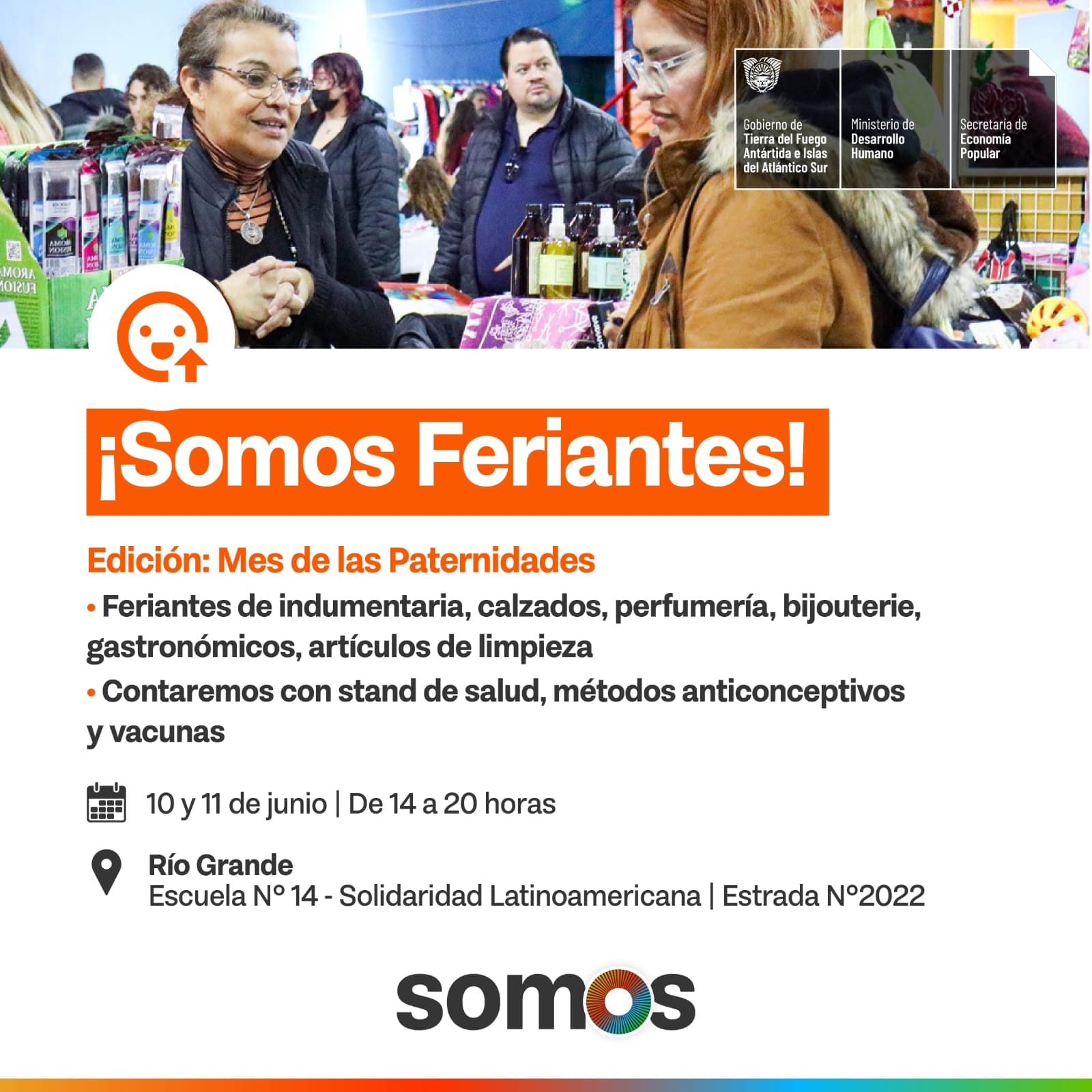 La Secretaría de Economía Popular del Ministerio de Desarrollo Humano invita a la comunidad a participar de las ferias populares «Somos Feriantes» que se llevarán a cabo en Tolhuin, Ushuaia y Río Grande. Estos encuentros multitudinarios reúnen a emprendedores y emprendedoras de los rubros de gastronomía, artesanía, producción textil y manualidades, quienes ofrecerán sus productos y servicios al público.