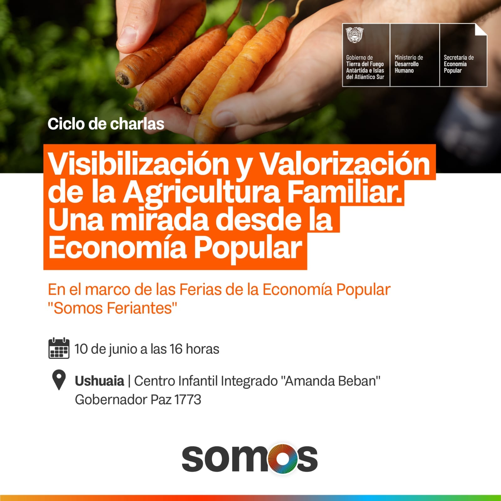 - Ushuaia: La feria se llevará a cabo en el Centro Infantil Integrado Amanda Beban, ubicado en Gob. Paz 1773, en horario de 15 a 20 horas. Durante esta jornada, se llevará a cabo una charla sobre «Visibilización y valorización de la agricultura familiar. Una mirada desde la economía popular». Además, el Ministerio de Salud contará con un stand para realizar controles médicos y vacunación.