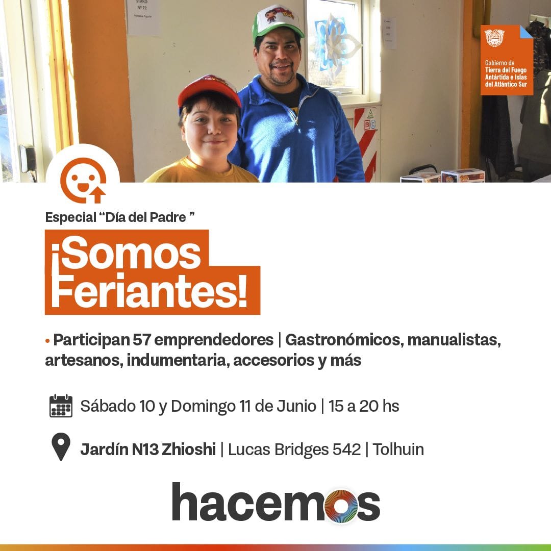 - Tolhuin: La feria se llevará a cabo en el Jardín N° 13 Zhioshi, ubicado en Lucas Bridges 542, en horario de 15 a 20 horas.
