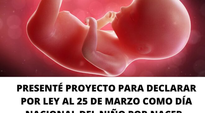 En el proyecto, el Senador fueguino insta al Poder Ejecutivo a adoptar las medidas necesarias para la más amplia difusión del Día Nacional del Niño por Nacer. «A través de las áreas competentes se deberá implementar anualmente durante la cuarta semana del mes de marzo jornadas de concientización y reflexión, así como de programas que promuevan la defensa de la vida des