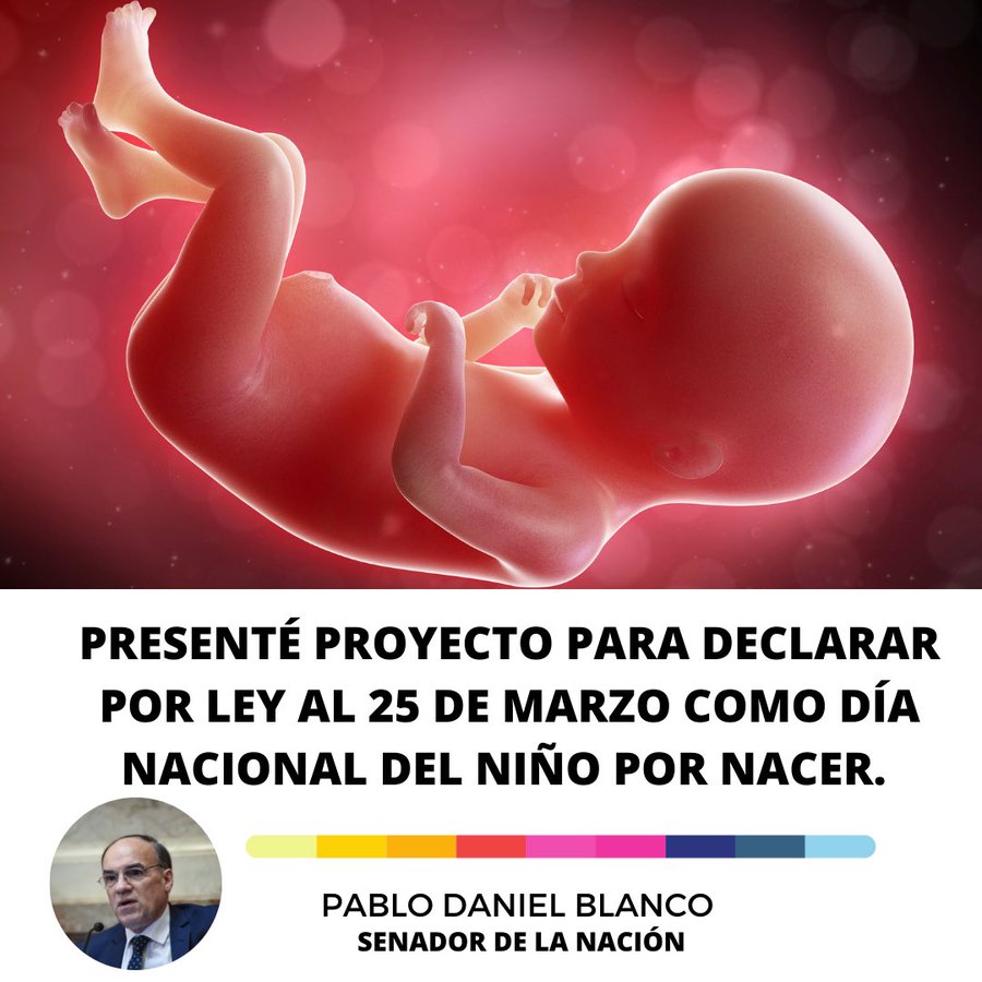 El Senador Nacional de Juntos por el Cambio, Pablo Daniel Blanco, presentó un proyecto para instituir al día 25 de marzo de cada año como Día Nacional del Niño por Nacer.