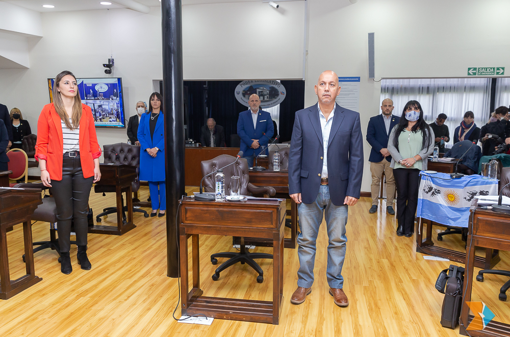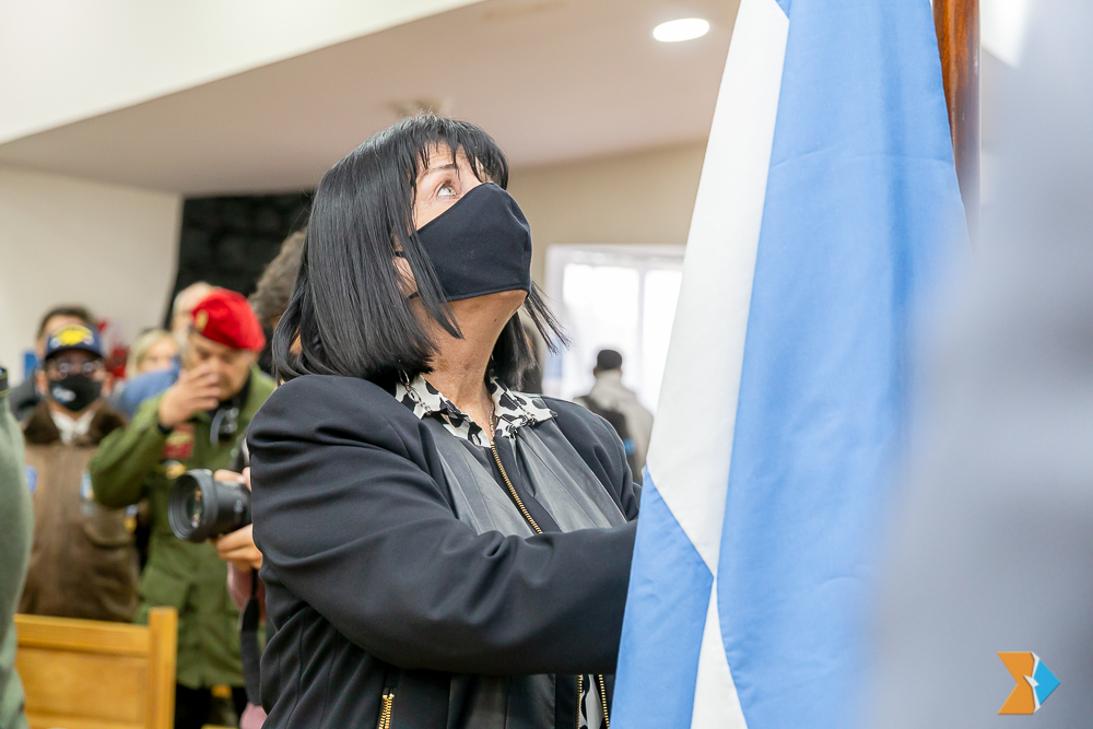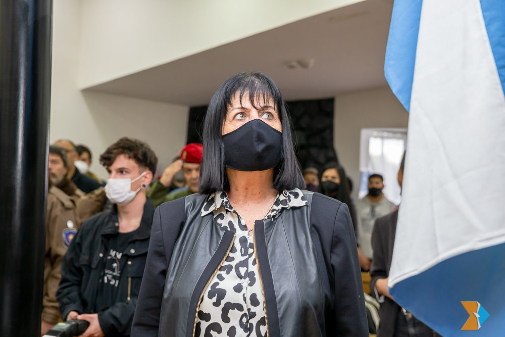 Los encargados de izar el pabellón nacional y provincial, fueron el legislador Federico Greve (FORJA) y la legisladora Liliana Martínez Allende (UCR).