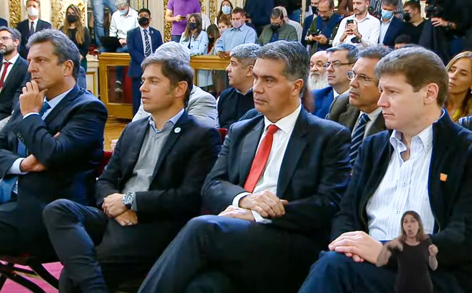 El Mandatario fueguino acompañó la presentación del presidente de la Nación y del ministro de Economía junto a sus pares de las provincias de Buenos Aires, Axel Kicillof, de Chaco, Jorge Capitanich y del presidente de la cámara de Diputados, Sergio Massa.