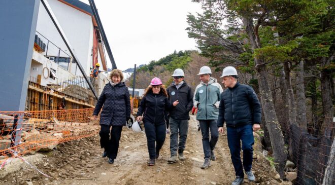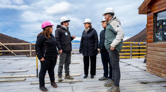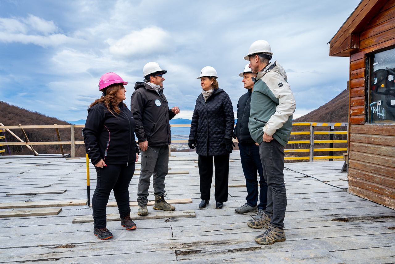 La Vicegobernadora Mónica Urquiza, junto a la Ministra de Obras y Servicios Públicos Gabriela Castillo y el Presidente del Instituto Fueguino de Turismo, Dante Querciali, recorrieron el avance de los trabajos en el cerro, en una visita que marca un hito en el desarrollo de infraestructura turística de la provincia.