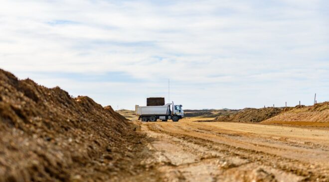 «Tenemos toda la flota trabajando en la calzada tal como estaba planificado. Este movimiento de suelo tiene que ver justamente con poder aperturar en el mes de mayo lo que será la Ruta 7″.