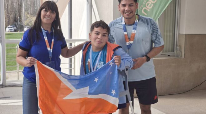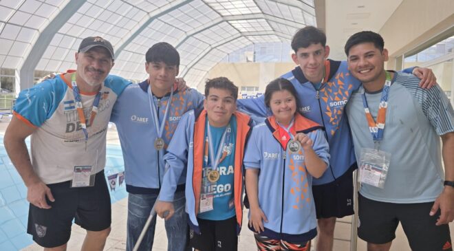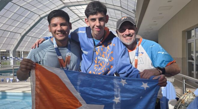 También en los deportes para personas con discapacidad, el conjunto de nadadores fueguinos tuvo otra buena jornada. Este sábado por la mañana, Thiago Marín Quispe volvió a destacar en el podio, llevándose la medalla del primer lugar en los 50 metros, estilo Libre, y la de plata en Espalda. Por su parte, Mateo Baroni también ganó el oro en 50 metros libres, mientras que Candela Paz, llegó en 2° lugar en estilo libre, también en los 50 metros, repitiendo la gran actuación de la jornada inaugural.
