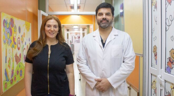 Al frente del procedimiento quirúrgico que se realizó a fines del mes pasado estuvieron el cirujano pediátrico Rodrigo Santibañez y la cirujana Eugenia Allori.