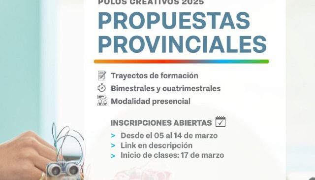 Cabe resaltar que el inicio de clases será el 17 de marzo y que los interesados pueden inscribirse hasta el 14 de marzo inclusive través de https://forms.office.com/r/PWLgjuta8T o bien acercarse a cualquiera de los polos creativos.