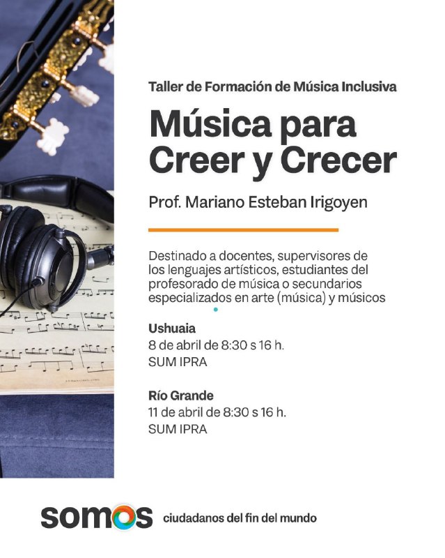 El Ministerio de Educación, a través de la Dirección Provincial de Educación Artística, realizará un nuevo Taller de formación docente en música inclusiva, denominado “Música Para Creer y Crecer».