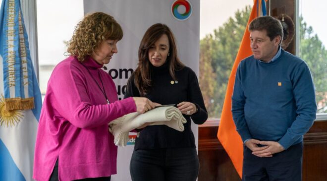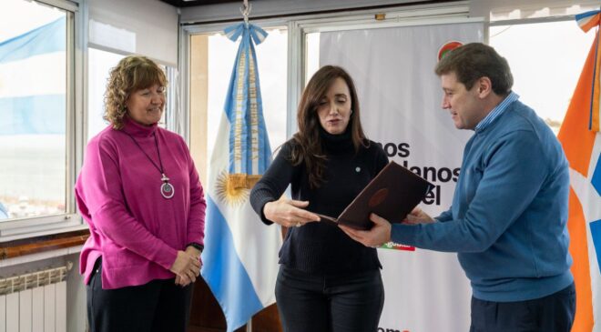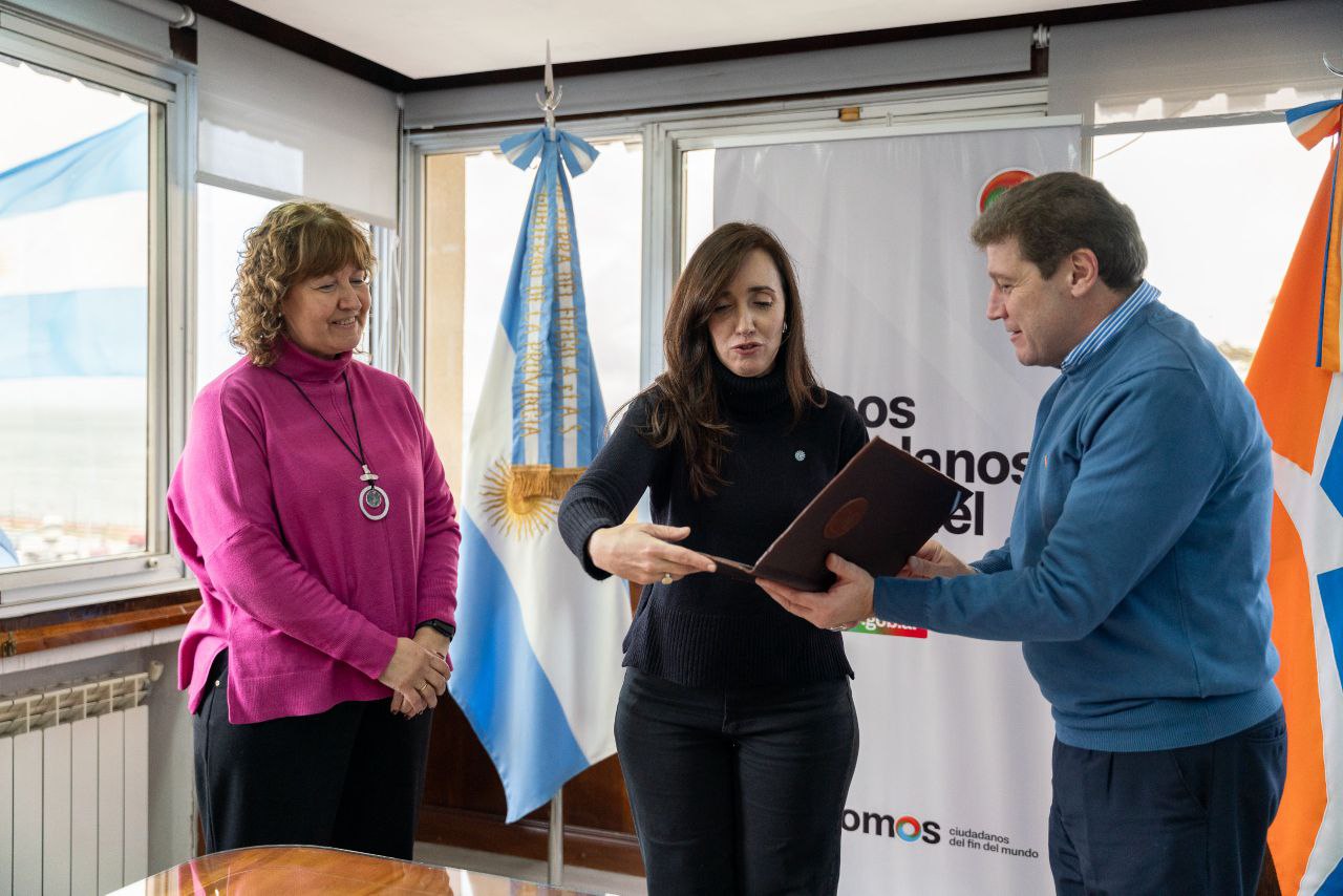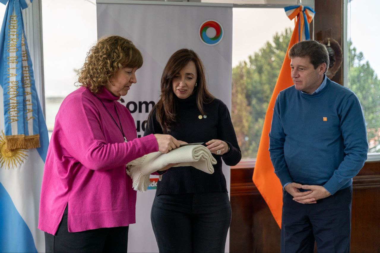 Melella estuvo acompañado por la vicegobernadora, Mónica Urquiza; la ministra de Obras y Servicios Públicos, Gabriela Castillo y el secretario de Malvinas, Antártida e Islas del Atlántico Sur y Relaciones Internacionales, Andrés Dachary.