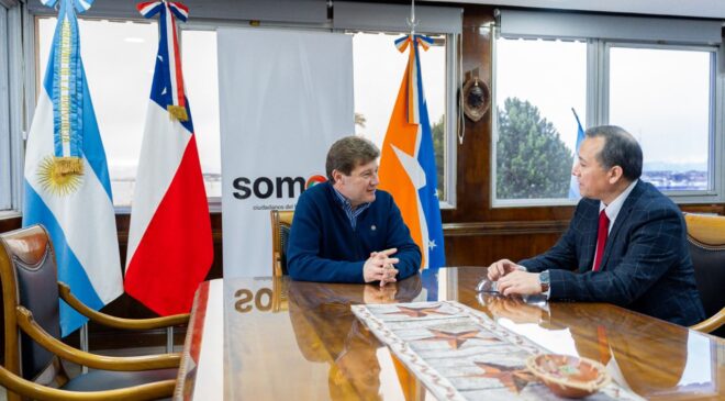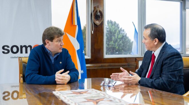 El Gobernador de Tierra del Fuego AIAS, Gustavo Melella, mantuvo un encuentro con el Cónsul de la República de Chile en Ushuaia, Rodrigo Toledo, durante el cual dialogaron acerca de agendas en común para profundizar las relaciones de cooperación entre el país trasandino y la provincia.